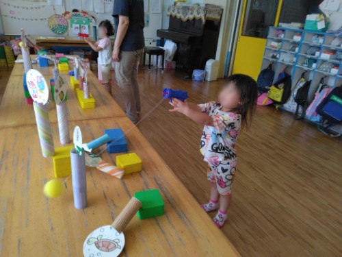 ゆらゆら揺れて落ちるので何度もトライする子が続出! |