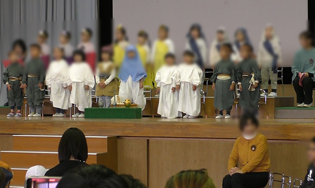 | 12月13日に行われたクリスマスお遊戯会では、年中組を中心に、ページェント(降誕劇)を行いました。 |